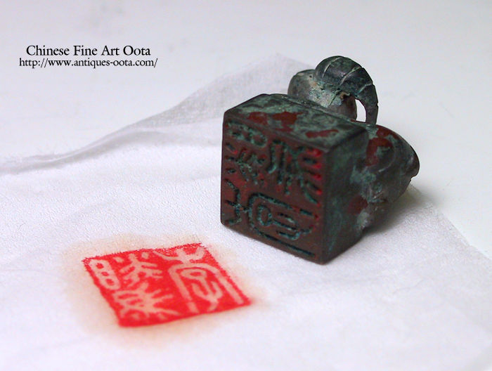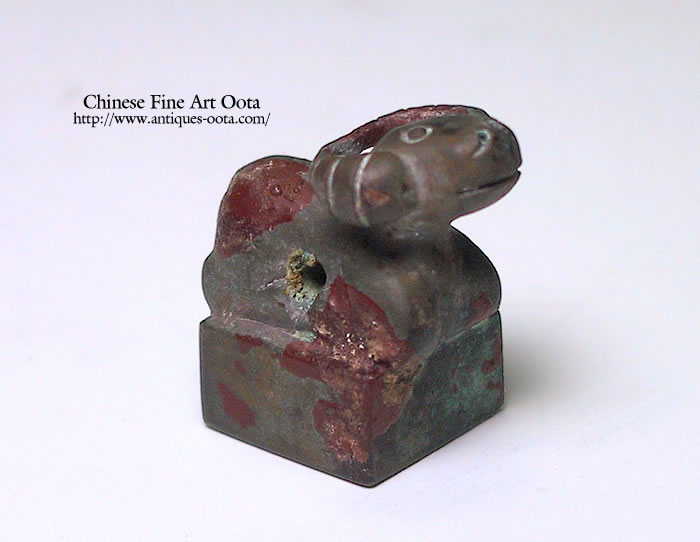 漢代には印制が確立し、書体は小篆や繆篆で官位に応じて印材・鈕・綬が定められた。普通の官印は青銅鋳印で官吏の身分を証するものとして与えられ、退官する時に返上した。官吏はこれを佩帯し、文書や交易の物品に鈕をかけ封泥で封をした上に押印した。鹿鈕は極めて珍しく、北方民族の印章と思われる。印面の抜けは極めて良好。茶色部は鉄分の食付き。 前漢の中央政府が少数民族・美族にさずけた羊鈕の官印が知られるように、少数民族の首領は「漢の印綬をおぶ」という有様であった。