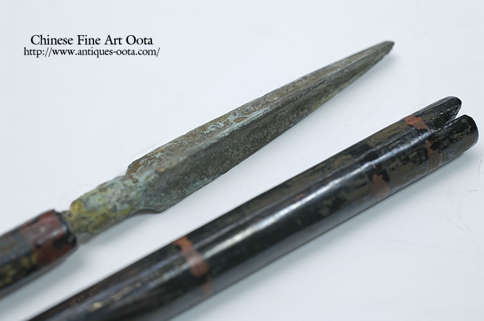 銅の鏃は意識的に錫の含有量を減らして鉛の含有量を増やしている。そのため、鉛に含まれている毒性で鏃の殺傷力が大きくなった。これは秦代が兵器製造の面で兵器の効能を高め・改善するため、実践の中で絶えず模索してかなり科学的な金属配合比例を基準を探し当てたことを示している。葦製の軸は区分けされて交互に朱漆で剣先文が描かれる。鏃表面には酸化防止の為にクロム酸化物をつけている。軽量である。射は六芸のうちの一項目であり、当時の貴族が広く訓練した技芸のひとつ。