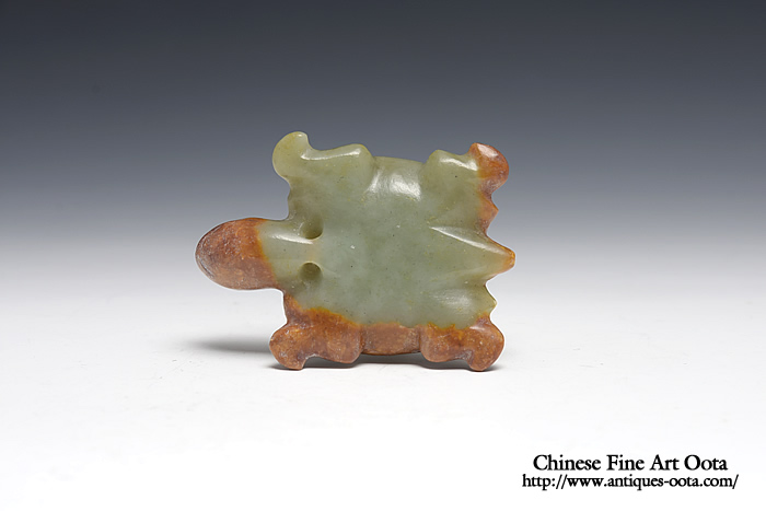 紅山文化の玉亀は案外稀少。漢時代の握豚のように両手に握った状況で発見されている。亀をめでたい動物とする中国伝統の観念は、新石器時代すでに芽生えていたのであろう。