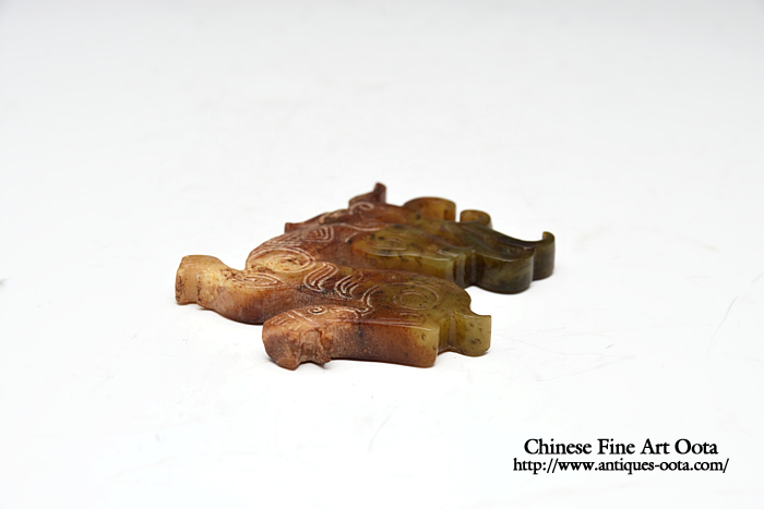 臣字眼・体表全面瑞雲が力強く刻される。黄玉が泌化により局部褐色化。