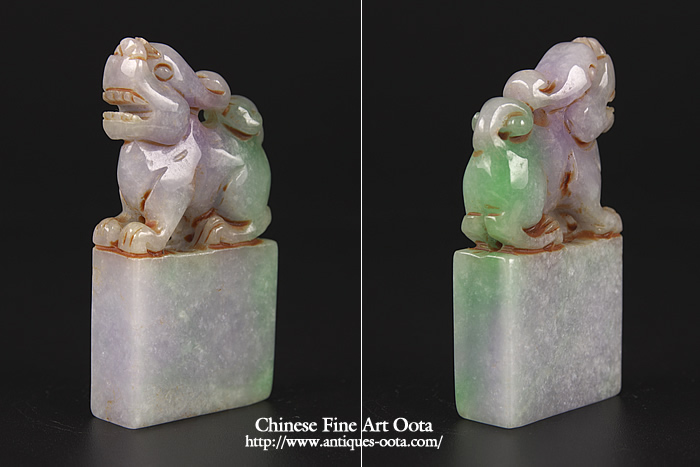 バイオレット(紫)・緑の混然一体色が美しい。文房飾。